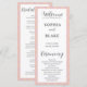 The main text of the program is presented in a simple black block font that is easy to read, while the words "Welcome," "Ceremony," and "Wedding Party" are displayed in a pretty black modern script font, adding an extra touch of elegance and style. The couple's names are featured in bold black letters with letter spacing that makes them stand out, ensuring that their names are front and centre.