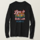 I love this artist. Their designs are cute and whimsical. But I ordered too large a size. I don’t mind as I’m going to use it to sleep in. I’ll probably order this in a short sleeve style to wear in the summer. My family loves my chocolate chip cookies so this design has significance for me. Bright and bold. It was off center but that was my fault as I edited the design. Should have left it alone but was just trying out the editing feature. Great editing system to play around with and change things up a little bit