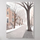 Brownstone Street | Snowy Winter Watercolor Art Poster