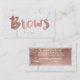 A modern, stylish brow business card and appointment card with modern hand lettering style brush typography in faux rose gold foil on a trendy and elegant white marble background.