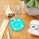 Brt Aqua Wht Greek Key #2 Framed 3 Init Monogram Key Ring