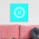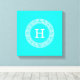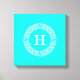 Brt Aqua Wht Greek Key Rnd Frame Initial Monogram Canvas Print