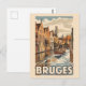 Bruges Belgium Illustration Travel Art Vintage Postcard