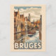 Bruges retro vector travel design. Bruges, known as the "Venice of the North," is a picturesque mediaeval city in Belgium, famous for its charming canals, historic architecture, and world-class chocolate.