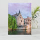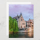 Painting of Bruges old town and Belfry tower with pink sky during sunset, Bruges, Belgium.