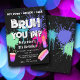 A teen boys "Bruh" themed birthday invitation using cool typography. A custom kids neon graffiti blue, green, pink and purple "hot dogs, arcade and cake " teenage boys birthday invitation design perfect for any teens birthday party theme. Customize this "Bruh" birthday invitation with your own text and make it your own!