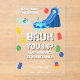 A teen boys "Bruh" Waterslide themed birthday invitation using cool typography. A custom kids black and white "pizza, cake and waterslide " teenage boys birthday invitation design perfect for any teens birthday party theme. Customise this  "Bruh" birthday invitation with your own text and make it your own!