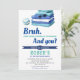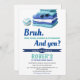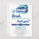 Fun Bruh Cool Blue Pool Party Boys Birthday Invitation. The design features a simple white background with the title "BRUH".