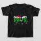 The t-shirt feels and looks great quality, a good thick cotton. It will be a little big for my son, but that means he will be able to wear it and not out grow it too soon. The print was as described on the order when personalised. True size, shape and colour T-shirt- thanks.