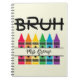 Add a splash of colour to your teaching essentials with this personalised teacher notebook featuring a vibrant crayon design and the playful "Bruh" text. Perfect for back to school, this notebook is an ideal gift for teacher appreciation. The cute and inspirational design is perfect for teachers who love to combine fun with functionality. Whether for taking notes, planning lessons, or journalling, this notebook is both practical and stylish. Show your appreciation for the best teacher ever with this unique and thoughtful gift, ideal for teachers who inspire and bring joy to their classrooms.