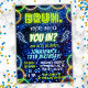 Bruh You In? Neon Glow Blue Green Boy Birthday Invitation