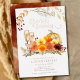 Brunch and Bubbly bridal shower invitation with luxury rose gold foil typography - perfect for fall, pumpkin season and thanksgiving. Watercolor design features autumn leaves, flowers and pumpkin in warm earthy colours. Easy to edit for alternative occasion such as couples shower or wedding shower.