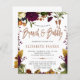 A modern chic autumn fall brunch and bubbly budget affordable invitation featuring burgundy and rusty orange flowers, dried foliage, and green leaves, and a classy handwriting whimsical copper glitter typography script. +++++++++++ Easy to personalise it with your details! ++++++++++ Suitable for trendy floral glam champagne brunch themed bridal showers, outdoor garden autumn or end of summer backyard elegant bridal parties.
