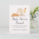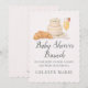 Neutral brunch theme, soft beige watercolor style featuring layered cake with florals, croissant detail, and sparkling drink accent, baby shower brunch design for hosting a morning gathering with light bites, relaxed table setting, and a coordinated brunch celebration setup.