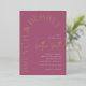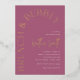 Give your bridal shower a sparkle with real gold, silver, or rose gold foil and set the tone for an elegant event with this chic arch bridal shower invitation! The real foil phrase "Brunch & Bubbly" curves along the edge of the card, and the bride's name is written in foil-pressed modern script lettering. The event details are aligned to the right of the card in classic serif typography. The background is a bold purple, with the event details in a soft cream. The colours are fully editable. Cards reverse to a floral pattern against dark purple. Perfect for themes like pearls or petals and prosecco, brunch with the bride, a cocktail party, or any celebration with a modern, stylish vibe. You can easily choose from gold, silver, and rose gold foil from the tool above. View the collection linked on this page for matching items, or visit our store for more bridal shower invitations.
