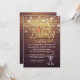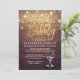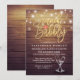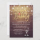 Bridal Shower / Wedding Celebration Invitation Card Templates - Elegant Faux Gold Foil Brunch & Bubbly Lettering Script, Vintage Champagne Glasses and String Lights on Rustic Wood Background.
