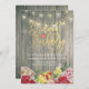 Bridal Shower / Wedding Celebration Invitation Card Templates - Faux Gold Foil Script with Floral and String Lights on Rustic Wood Background.