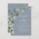 Brunch and Bubbly Eucalyptus Dusty Blue Greenery Succulent Botanical Watercolor Emerald Green Spring Wedding Bridal Shower Invitations on white background - includes beautiful and elegant script typography with modern botanical leaves and greenery for the special Bride to Be celebration.
