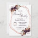 This elegant geometric brunch and bubbly bridal shower invitation features rose gold copper, purple, champagne and mauve florals, a rose gold geometric element, with trendy hand lettered script, and faux rose gold foil on the back. Easy to customise with your own bridal shower information. This is perfect for the summer, spring, fall, or winter wedding. Back features copper rose gold faux foil stripes.