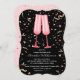 Brunch and bubbly bridal invitations with two pink champagne glasses on a background of pink and gold confetti on black is perfect for a wedding bridal shower. If you like thicker paper, use the Matte paper or for a shimmery look, the Pearl Shimmer paper. MATCHING items in our store.