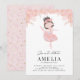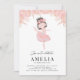 Brunette Ballerina in Pink Dress Floral Birthday Invitation