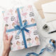 Pretty Ballerina personalised wrapping paper featuring three different ballerinas with a bouquet of flowers, ballet slippers and a crown. Custom text greeting and personalised name makes this paper great most special occasions.