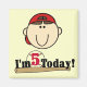 Baseball 5th Birthday design featuring a brown haired boy baseball player with red cap, baseball, bat, and text that reads "I'm 5 Today!".