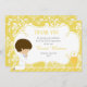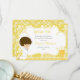 Brunette boy First Communion Damask Thank You Card