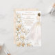 Gorgeous hand drawn watercolor bride with brown hair in her wedding dress and surrounded by magnolias. Back of invitation features wedding rings in box with bride and groom's initials.