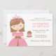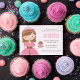 Adorable birthday party theme features a sweet illustration of a little girl wearing a princess gown and a tiara, holding a cupcake.