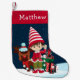 Brunette Elf Boy with Rudolph Small Christmas Stocking