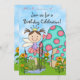 Cute Brown Haired Fairy Princess with a frog, pond, mushrooms and flowers Birthday Party Invitation for Girls.