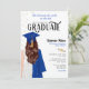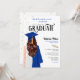 She believed she could, so she did female graduation invitation. Features woman graduate portrait with long brown hair, blue graduation cap and robe. Add your grad's photo on the back of the invitation with name of her school, degree earned, and her next steps. Perfect for brunette haired woman who are high school grads, college or university graduates, undergrads or graduate degree grads.