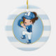 Brunette Girls Blue Softball Ceramic Tree Decoration