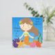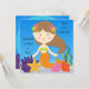 You can easily customise our Brunette Mermaid birthday invitations before ordering with your child's name and party specifics! A cute brown haired mermaid, starfish, seaweed, and bright blue water make this pretty mermaid theme invite a hit!