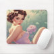 Brunette Pin-Up Pastel Flowers Mouse Pad