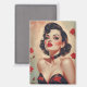 Brunette Pin-Up Red Roses Portrait Magnet