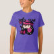 Brunette haired girl rock star design T-shirts, mugs, bags, buttons, magnets, keychains, stickers, cards, mousepads, clocks, andmore featuring pink and black guitar, record album, stars, musical notes, and a brunette girl in skull cap.