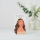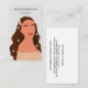 A business card perfect for your hairstylist or salon business featuring a silhouette of a smiling woman with long dark brown brunette hair and medium skin, with flower hair clips in her hair.