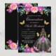Brunette Woman in Mexican Floral Dress Quinceañera Invitation