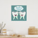 Cool art prints for the dentist's office. Remind patients to brush and floss with a cool custom kawaii art print for the dental office. Two happy kawaii art teeth remind everyone to brush and floss. Clean teeth are healthy, happy teeth!