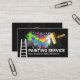 A black wall with peeling paint and graffiti is about to be painted over by a gold roller brush. Towards the base of the card lies the business name and its contact details.