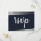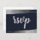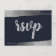 Elegant Brush Rustic Navy Silver Simple Modern Wedding rsvp Postcards with Rustic Silver Foil Like Print