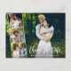 Modern Brush Script Change The Date Wedding Postponed New Wedding Date Couple 4 Photo Collage Postcard