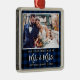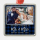 Modern Brush Script, Rustic Blue Plaid Our First Christmas as Mr. and Mrs. Wedding Photo Ornament