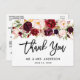 Brush Script Burgundy Floral Wedding Thank You Postcard