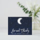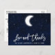 Modern Brush Script, Celestial Wedding Love and Thanks, Thank You postcard. Watercolor blue night sky with stars and the moon.