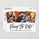 Modern Brush Script Change The Date Wedding Postponed New Date Announcement Couple 3 Photo Postcard