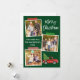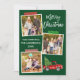 Modern Brush Script Merry Christmas 3 Photo Collage Holiday Card includes Craft Tape and Watercolor Vintage Red Truck with Christmas Tree. Forest Green Background.