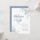 brush script watercolor dusty blue wedding theme. The text and colours can be edited.